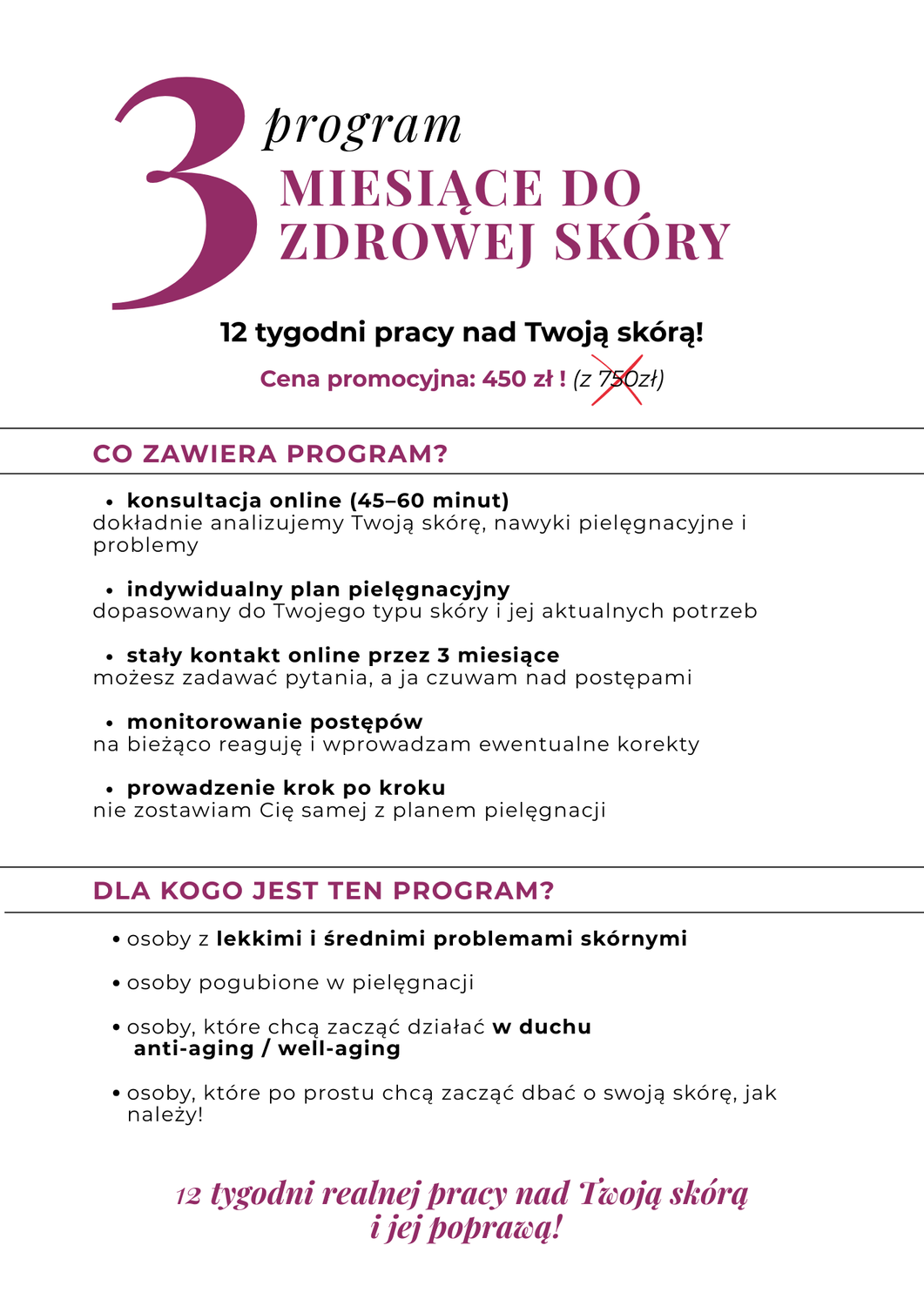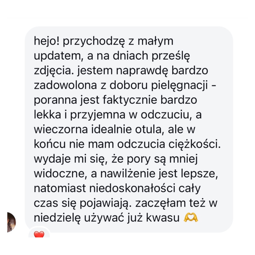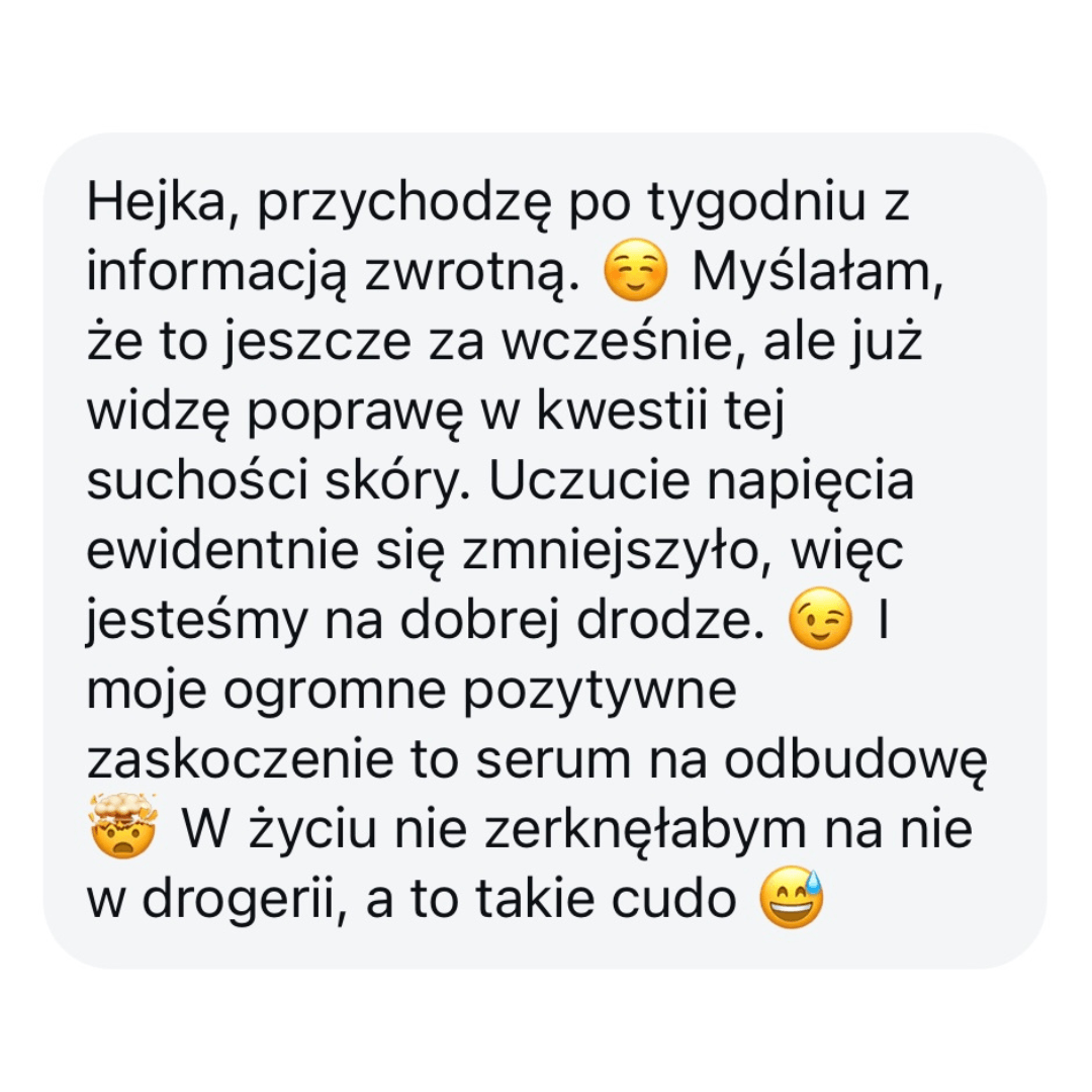 Czuwam nad Tobą i razem śledzimy postępy skóry. Zawsze możesz dopytywać o wszystko. Pozostaję dla Ciebie.