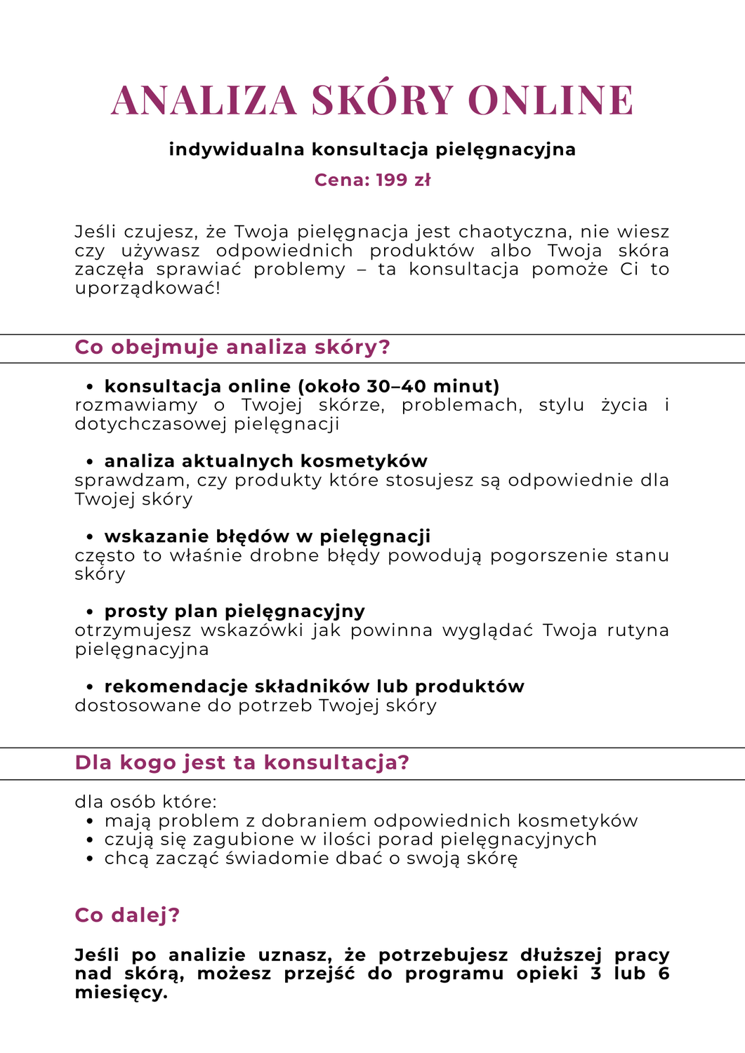 Po spotkaniu przygotowuję dla Ciebie plan pielęgnacyjny