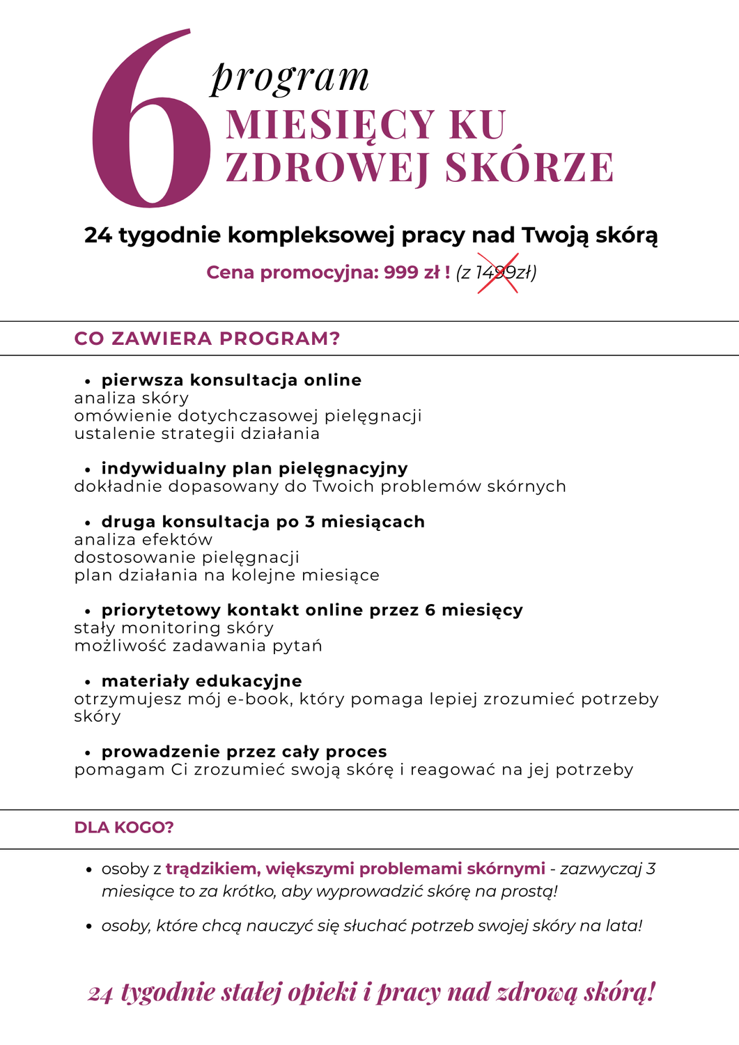 Wybierasz dla siebie wariant 3 lub 6-miesięczny (PS. jest dostępny także wariant samej analizy skóry)